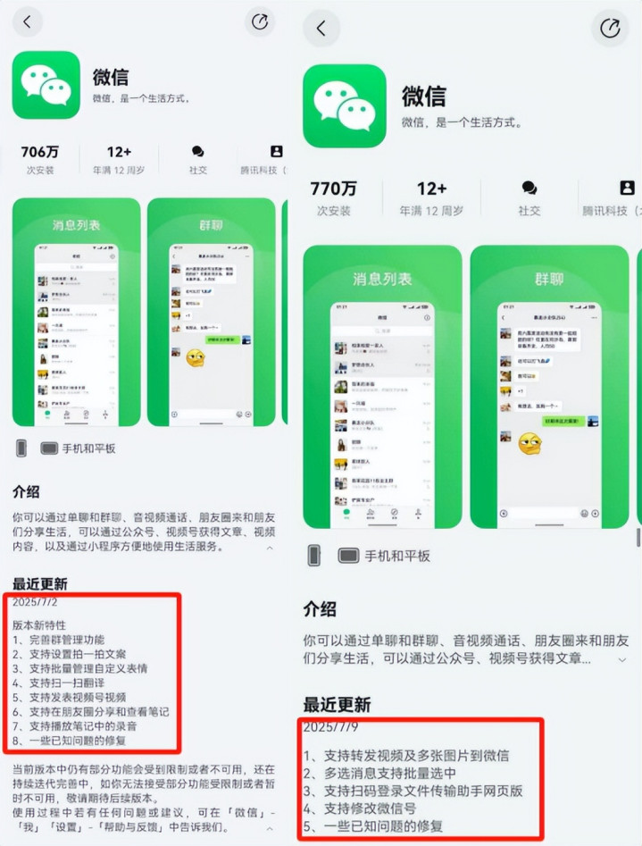 生活中不可或缺的软件,除了上面提到的抖音之外,微信也是必装APP之一。鸿蒙微信更新非常频繁,7月2号才推送更支持视频号内容发布、批量表情管理等功能,7月9号又推送了新版更新,支持多选消息支持批量选中、扫码登录文件传输助手网页版等功能,整体体验看齐安卓苹果。