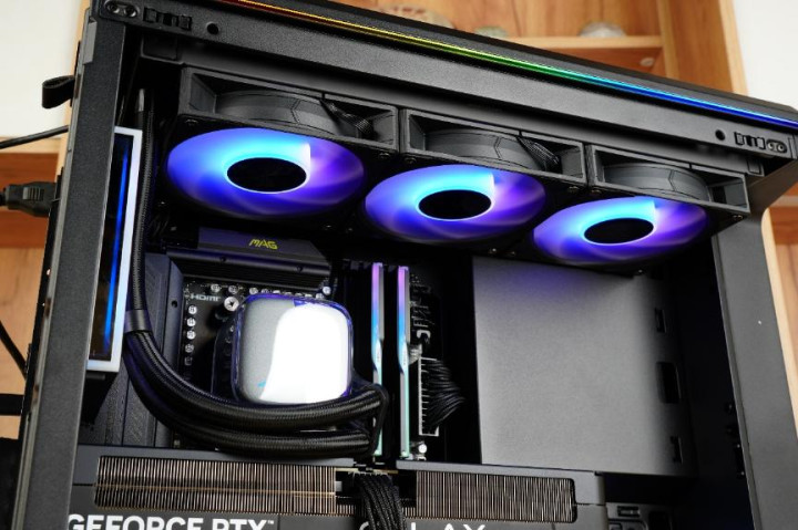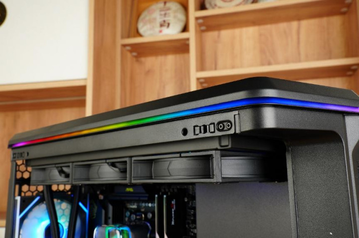 顶部的风扇支架最大可以支持360mm规格的冷排。