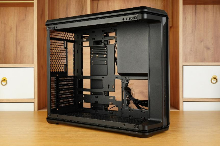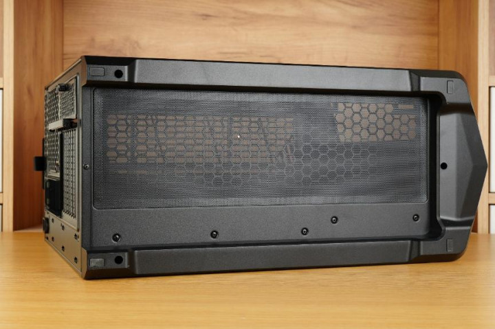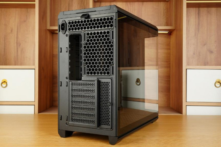先马巨浪3的背板通风孔采用了科技感十足的蜂窝状开孔,不但好看,还确保了空气流通、增强机箱的散热效能。
