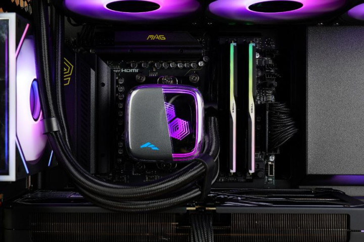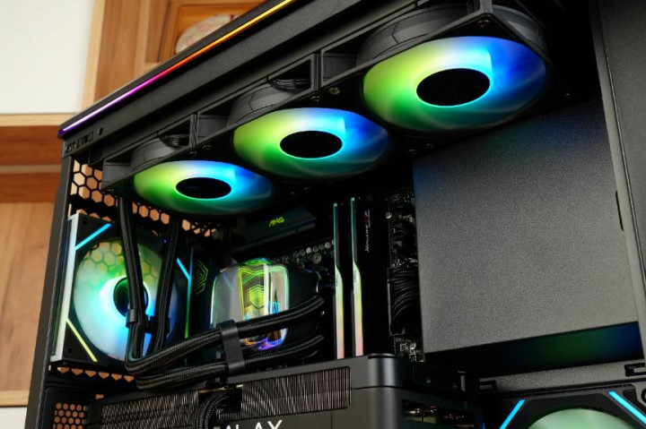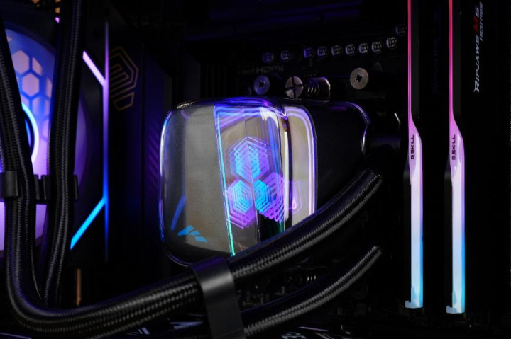 水冷方面搭配的是先马360水冷,其高透亚克力冷头带来了与众不同的透明、立体感,经典的ARGB无限镜像也透露出了深邃感。