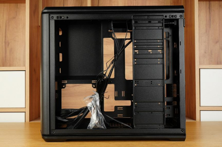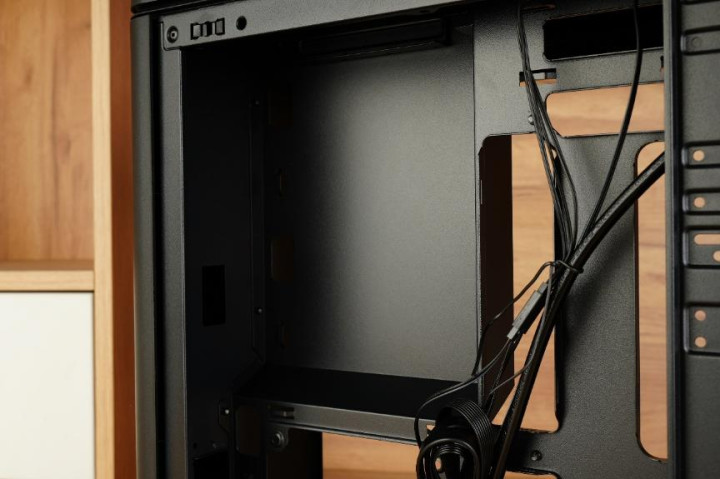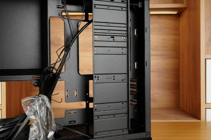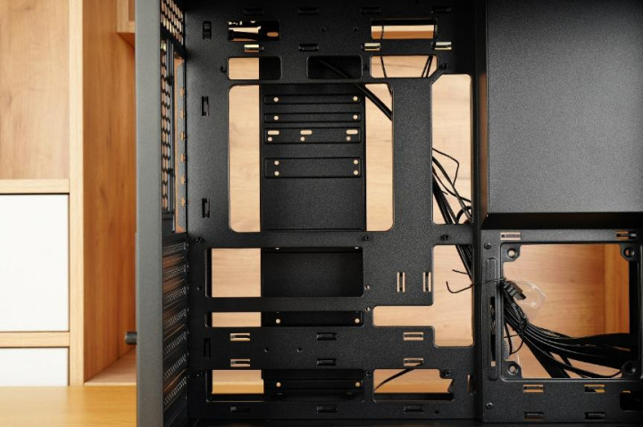 先马巨浪3的背线仓与常规的ATX机箱保持一致,电源以及硬盘支架都均放置于此。
