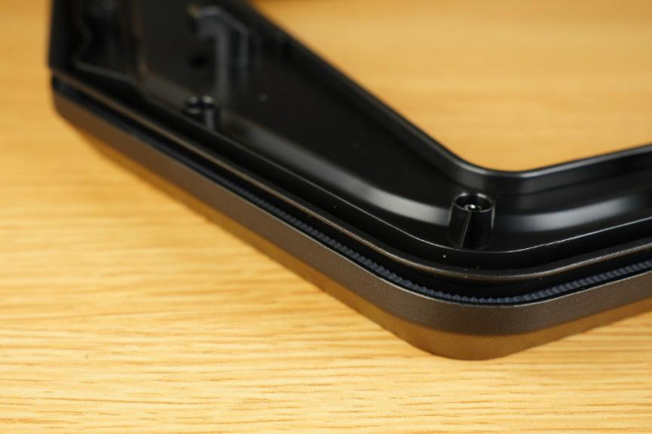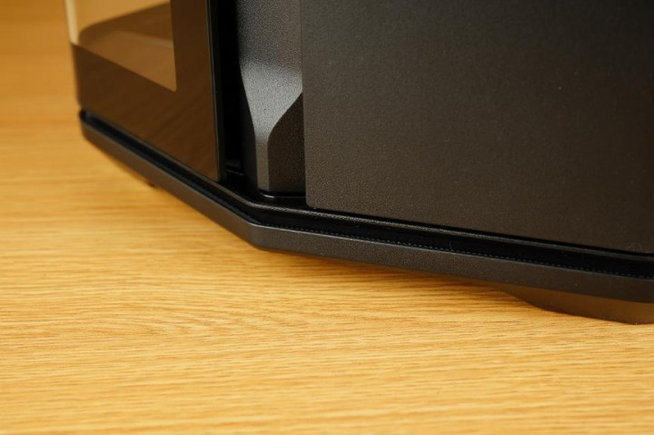 机箱正面的分割条从文字的边缘以及晒纹就可以得知模具的精细度非常不错。